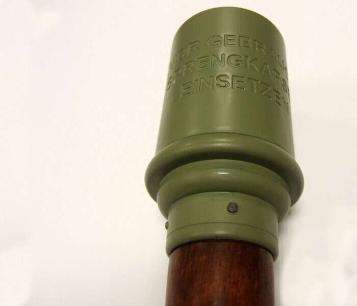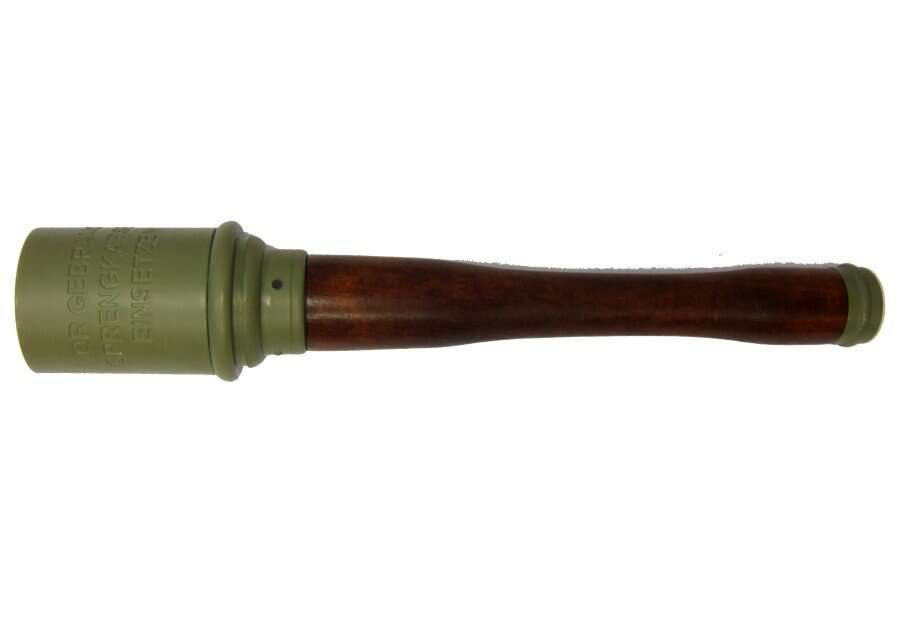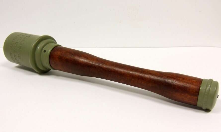 Den välkända Stielhandgranate M-24 från Tyskland. Introducerades 1915 och användes framförallt under de båda världskrigen.