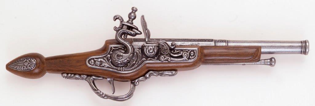 Denna skönhet av ett vapen gjord av Kolser ser ut som något Louis XV skulle använda och överraskar oss med sin unika charm. Den har en metallgravering som innefattar dess ormformade hammare tillsammans med dess utlösare.