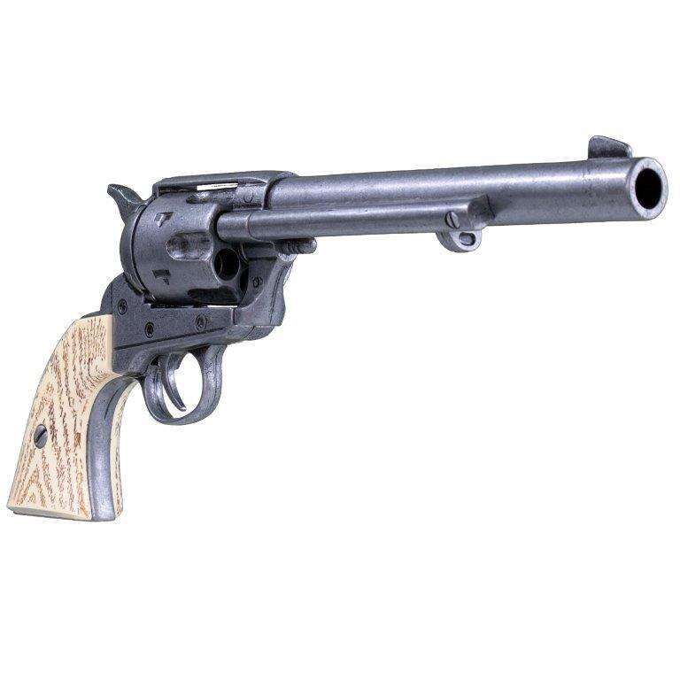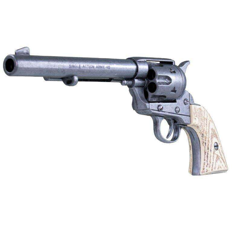 Kolser Colt Peacemaker replika mäter 31 cm i längd och har en 6,75″ pipa, vilket exakt återspeglar de ursprungliga måtten på den legendariska 1873 Single Action. Varje del av denna replika är designad för att se ut och kännas som en äkta Colt 45, vilket ger en överlägsen känsla av realism. Dessutom erbjuder modellerna ett urval av högkvalitativa handtag, såsom äkta trä, elfenbensimitation, imiterat ben eller imiterat trä, för att komplettera din specifika ”Imitation ivory”-modell.