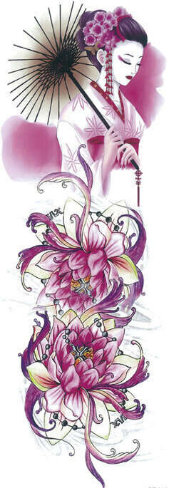 OBS! SE STORLEK! Tillfällig Tatuering – 46 x 17 cm – Geisha
